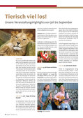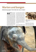 warten und bangen blase kommt eigentlich das jungtier in- nerhalb weniger minuten“, erklärt der zoo-doc. die geburt bei sayang aber geriet ins stocken. nach intensivem austausch mit einem experten aus hagenbecks tierpark, entschied zoo- tierarzt molnár, sayang bei der geburt zu unterstützen und ihr zunächst ein mittel zu verabreichen, das die ge- burtswege weich macht. anschließend spritze er der elefantenkuh das wehen fördernde mittel oxytocin. kurz darauf, um 11:27 uhr konnten dann alle aufatmen: sayang brachte im kreise der herde ihr drittes jungtier zur welt, einen gesunden bullen. „wir waren alle überglücklich und erleich- tert, als er endlich da war“, berichten die tierpfleger. und auch elefanten- schwester sitara freute sich sichtlich war bisher noch kein jungtier nach der geburt“, berichten die elefantenpfle- ger staunend. auch nicht seine drei halbgeschwister, die im dezember (22. und 23.12.) und januar (19.01.) zur welt kamen. und auch beim toben auf der anlage zeigt der kleine floh, dass er, obwohl er ein halbes jahr jünger ist, mit sei- nen älteren geschwistern dickerchen, kleine und mäuschen mithalten kann. dabei geht es zu wie bei richtigen geschwistern: mal tollen sie spie- lend über die anlage, schubsen und schieben einander oder toben durch schlammpfützen. „manchmal gönnt aber auch keiner dem anderen etwas. dann ist das gebrüll groß, wenn zum beispiel bei der fütterung mäuschen sich einen apfel zum herumspielen rüsselquartett: vier elefantenbabys über das neue familienmitglied und drehte trompetend eine pirouette im stall. als kleinstes mitglied der elefantenherde wird der bulle erst einmal floh genannt, bis ein richtiger name für ihn gefunden ist. obwohl er mit seinem geburtsgewicht von 117 kg schon recht schwer für einen floh war. gesichert hat und ihre geschwister versuchen, ihr den wegzunehmen“, berichten die tierpfleger. geht es bei dem mini-rüsselquartett einmal zu wild zu, passen auch die beiden drei- jährigen schwestern yumi und sitara auf: „die zwei sind richtig tolle baby- sitter“, finden die tierpfleger. so lange das zoo-team auf die geburt des jungtiers warten musste, umso schneller ging alles danach: schon nach kurzer zeit stand der kleine bulle auf seinen beinen und lief mit schnellen, noch etwas wackeligen schritten durch den stall. „er ist ein richtiger sportler, so schnell und agil beim spielen trainieren die vier jung- tiere übrigens ganz nebenbei ihren rüssel. der besteht aus über 40.000 muskeln und die zu koordinieren, be- darf es ein bisschen übung. kurz nach der geburt scheint der rüssel den elefantenbabys deswegen wohl im- mer noch irgendwie im weg zu sein. rüsseltraining: floh übt mit möhren indem sie dünne und dicke äste hoch- nehmen, sie herumbalancieren, mit möhren und äpfeln herumspielen, ihre geschwister am schwänzchen packen oder am rüssel festhalten, werden diese muskeln spielerisch trainiert. „sie üben auch schon, sich mit sand zu bewerfen, wie ihre mütter und ihre großen geschwister es machen, das klappt von mal zu mal besser“, berich- ten die elefantenpfleger. nach einem tag auf der außenanla- ge im dschungelpalast und dem vie- len toben geht das rüssel-quartett abends elefantenmüde in den stall. „die kleinen schlafen meistens sofort ein und liegen dann schnarchend ne- ben ihren müttern, die noch entspannt ihr abendbrot futtern“, erzählen die elefantenpfleger schmunzelnd. gut ausgeruht kann der elefantenkinder- garten dann am nächsten morgen wie- der alles im dschungelpalast auf den kopf stellen. jambo! info ein elefantenjungtier trinkt durchschnittlich 10 – 15 liter muttermilch am tag und nimmt täglich etwa ein kilogramm zu. der kleine floh brachte einen monat nach seiner geburt schon 155 kg auf die waage. jambo! · sommer 2017 · 21
